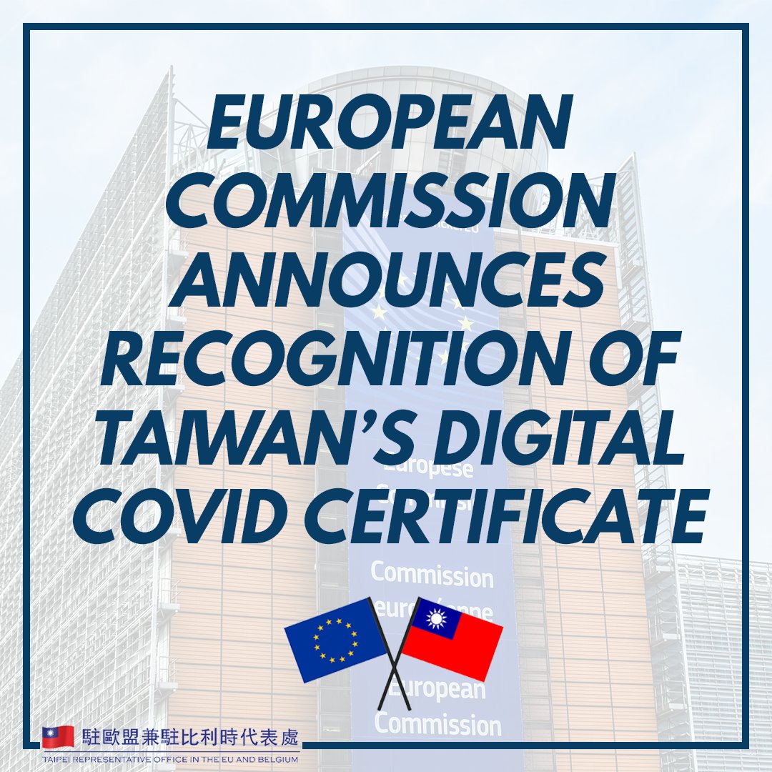 Our thanks to the European Commission for recognising Taiwan's COVID Vaccination Certificate