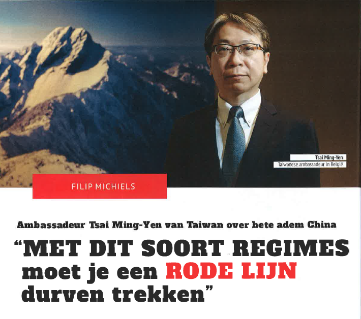 In the March issue of the Dutch-language magazine Doorbraak, Ambassador Tsai Ming-Yen was interviewed on the topic of "the China threat”. Under the standout headline quote of "With REGIMES like these, you have to dare draw a REDLINE", Ambassador Tsai outlined the situation in the Taiwan Strait.
