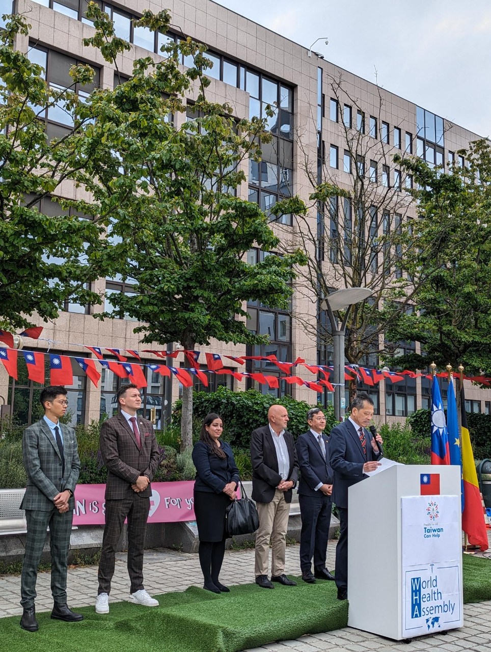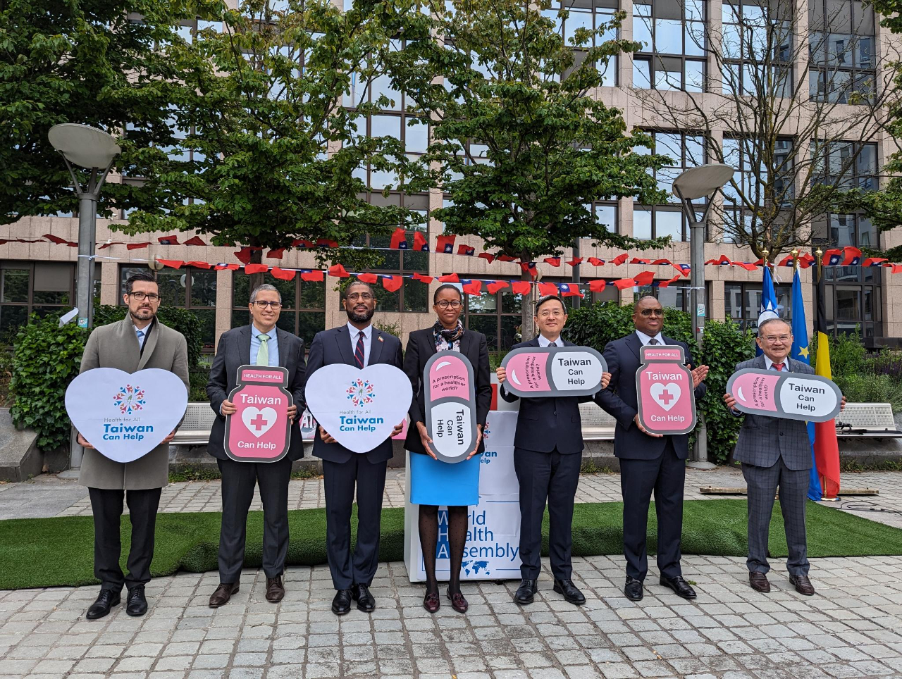 On May 22, the Taiwanese community in Belgium along with overseas students held the event "Health for All, Taiwan can Help - the bid to support Taiwan’s entry into WHA" at Place Jean Rey in front of the Council of the European Union and the European Commission, receiving wide support from the Ambassadors of our diplomatic allies, members of the Belgian Parliament, and overseas community members