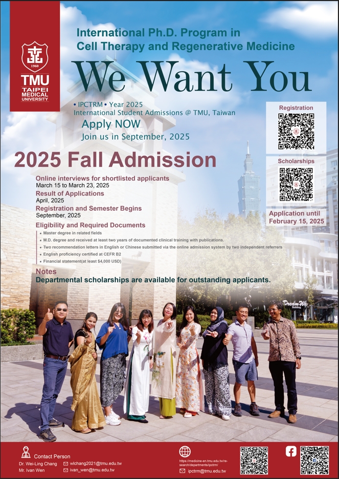 4) GuidelinesBrochure(as attached files): https://oge.tmu.edu.tw/wp-content/uploads/2024/11/TMU-PhD-Programs-Admissions-Guidelines-for-International-Students-2025-26V2-20241114.pdf?fbclid=IwZXh0bgNhZW0CMTAAAR3Q0Q6Eq5Nl_dCZ2Uca3jWsTR4X9okInjro48BcuLjlMRosB3V6dDW52LM_aem_no7T1joPwKqNhrX0eIDCSQ
