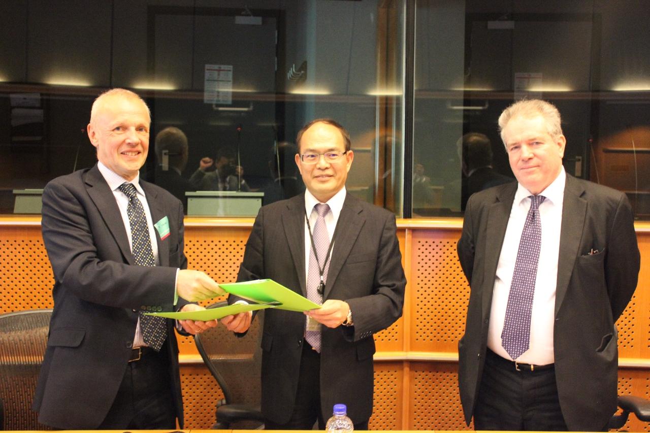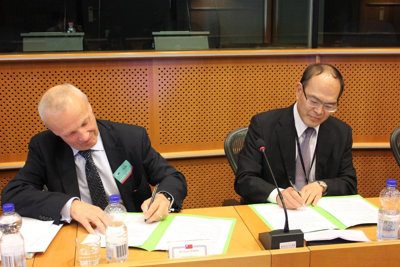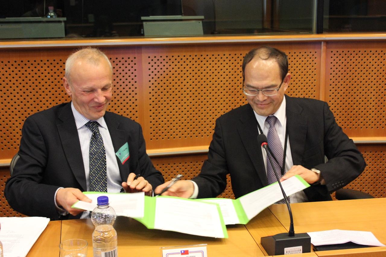 As a long-time champion of the fight against piracy, MEP Charles Tannock, Honorary Chairman of the EP-Taiwan Friendship Group, hosted the signing ceremony at the European Parliament in recognition of Taiwan’s counter-piracy contribution. The ceremony was attended by MEPs and officials from the European Union and diplomatic missions in Brussels.