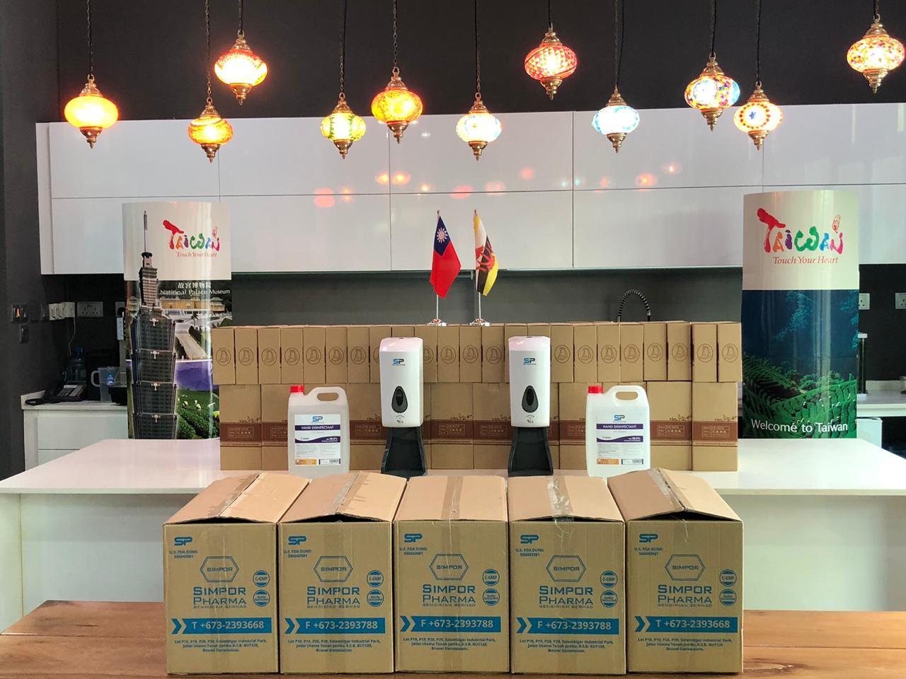 駐汶萊代表處聯繫臺灣愛心企業捐贈汶萊華校自動手部消毒機等防疫物資