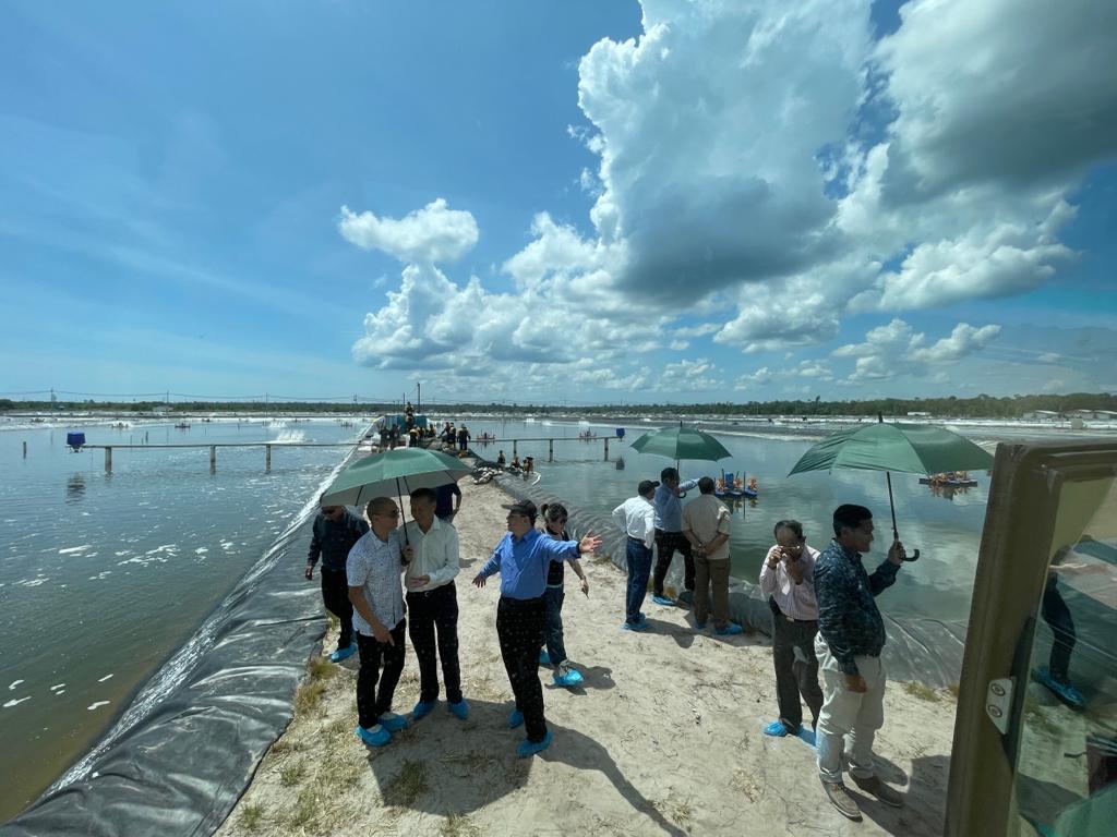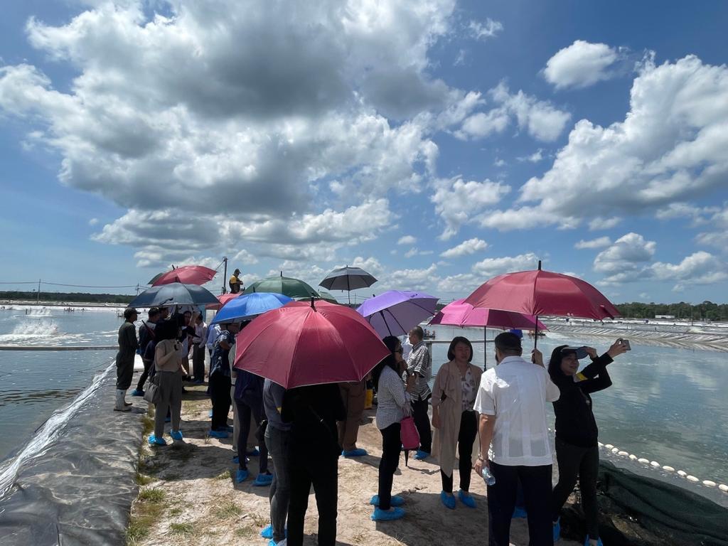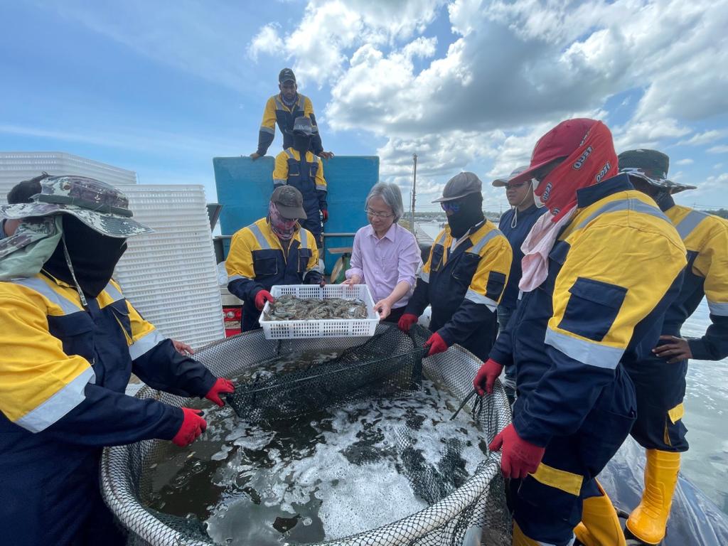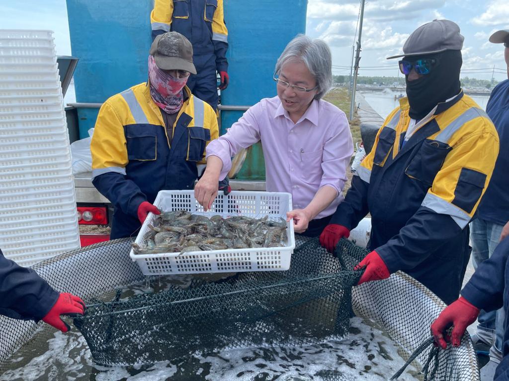 李大使及其他賓客一行在莊董事經理陪同下,驅車前往總面積達459公頃(已開墾250公頃)的養蝦場聽取公司業務簡報,瞭解公司創立過程、營運概況及未來發展願景,並實地參觀鮮蝦收成及蝦池整地擴建情形。隨後前往專屬餐廳品嚐GC集團自行養殖的鮮蝦及生產的各式海鮮食品,並赴引參觀廠區生蝦、熟蝦及製作魚漿魚餅生產線、檢驗室、飼料廠、製冰場等設施。