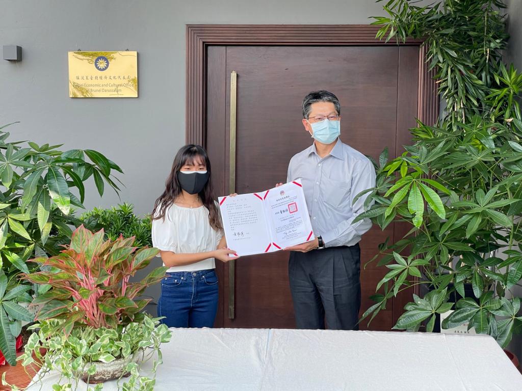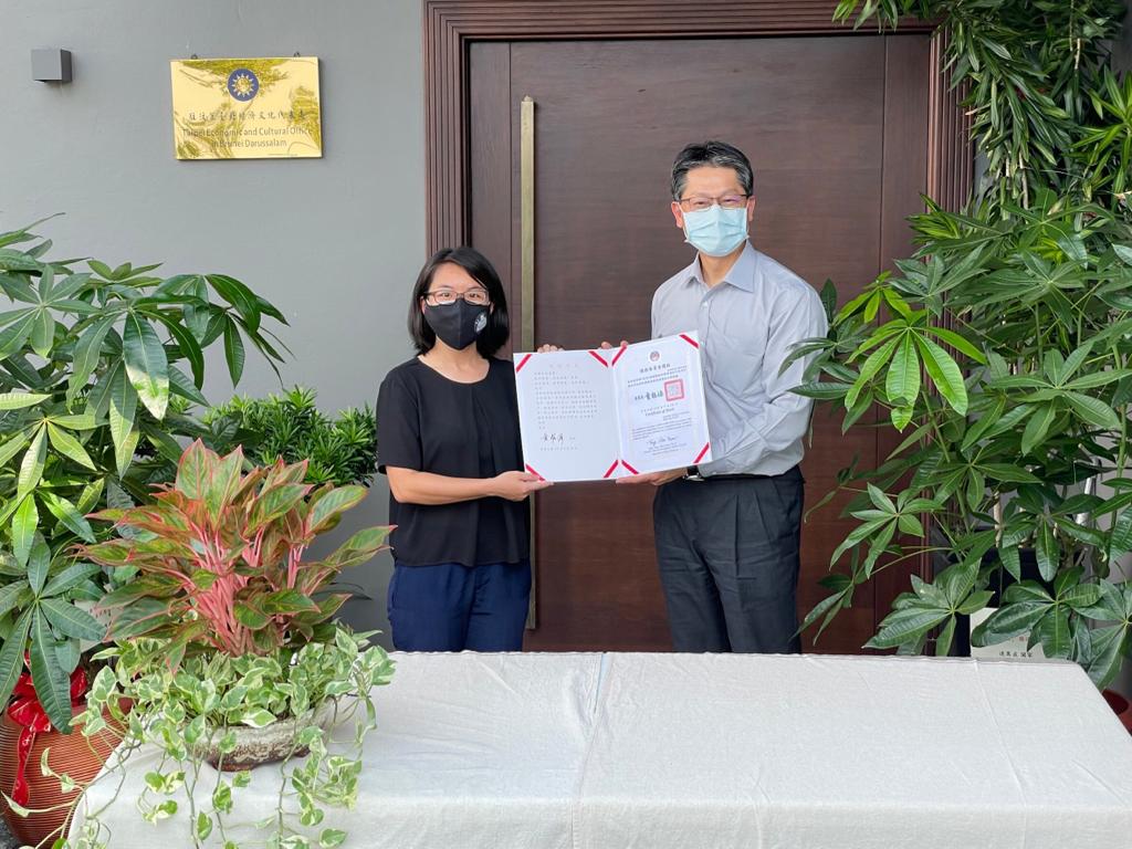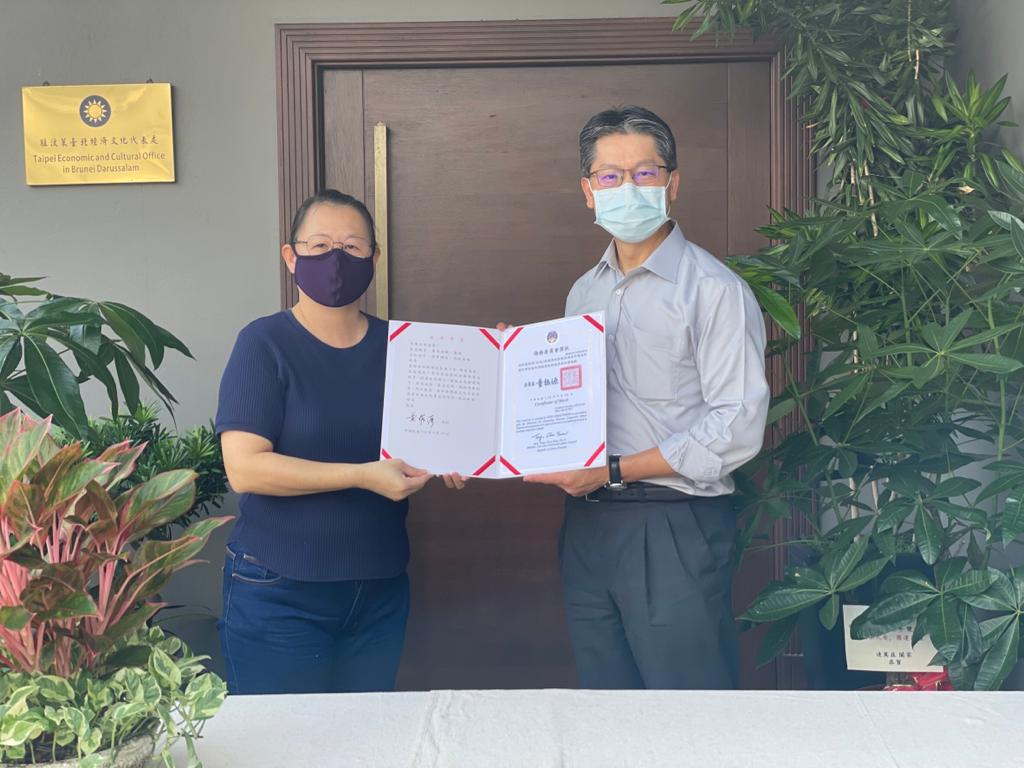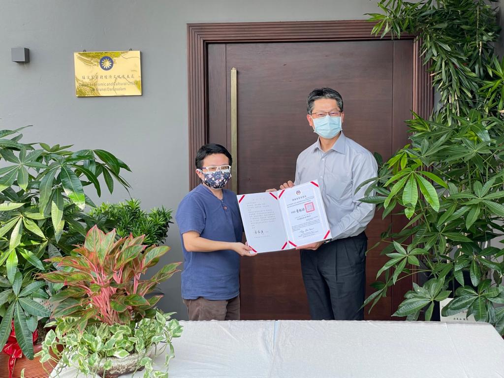 駐汶萊代表處李憲章大使本(10)月8日代表僑務委員會童委員長振源頒發海外僑民學校教師獎勵予任教年資分別屆滿30年、20年、10年與5年的馬來奕中華中學劉華元等5位老師及詩里亞中正中學符玉華等4位老師,向老師們長年辛勤教學的無私奉獻表達崇高的敬意與謝意。