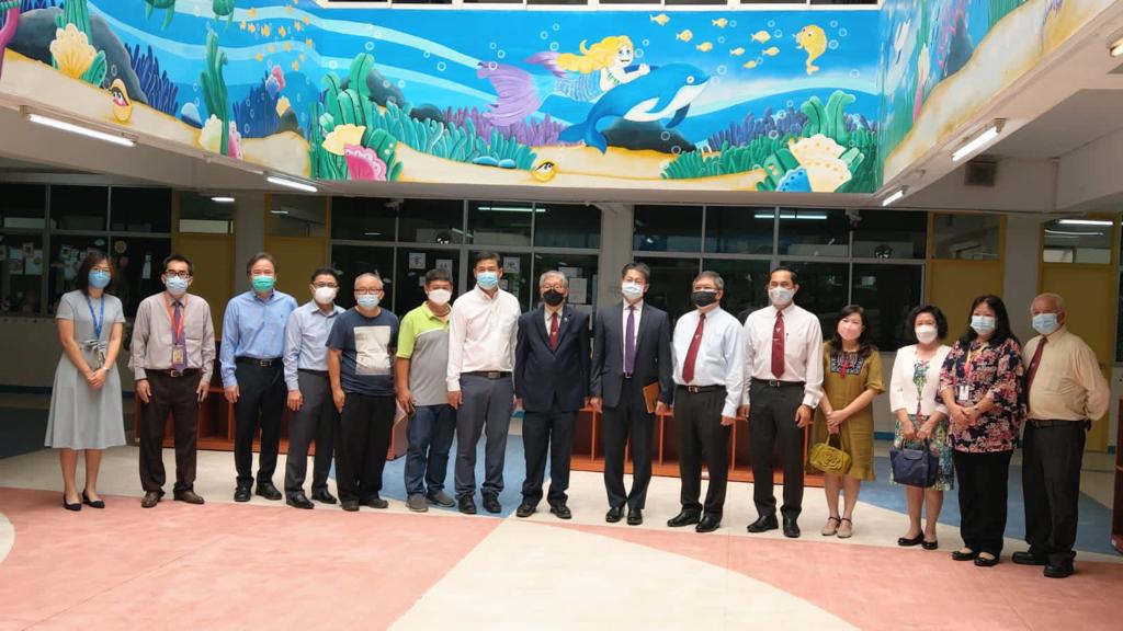 李大使赴汶萊中華中學參訪,王董事長長荷偕林副董事長明傑、許校長月蘭等在忠孝樓前熱烈歡迎