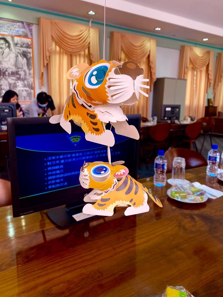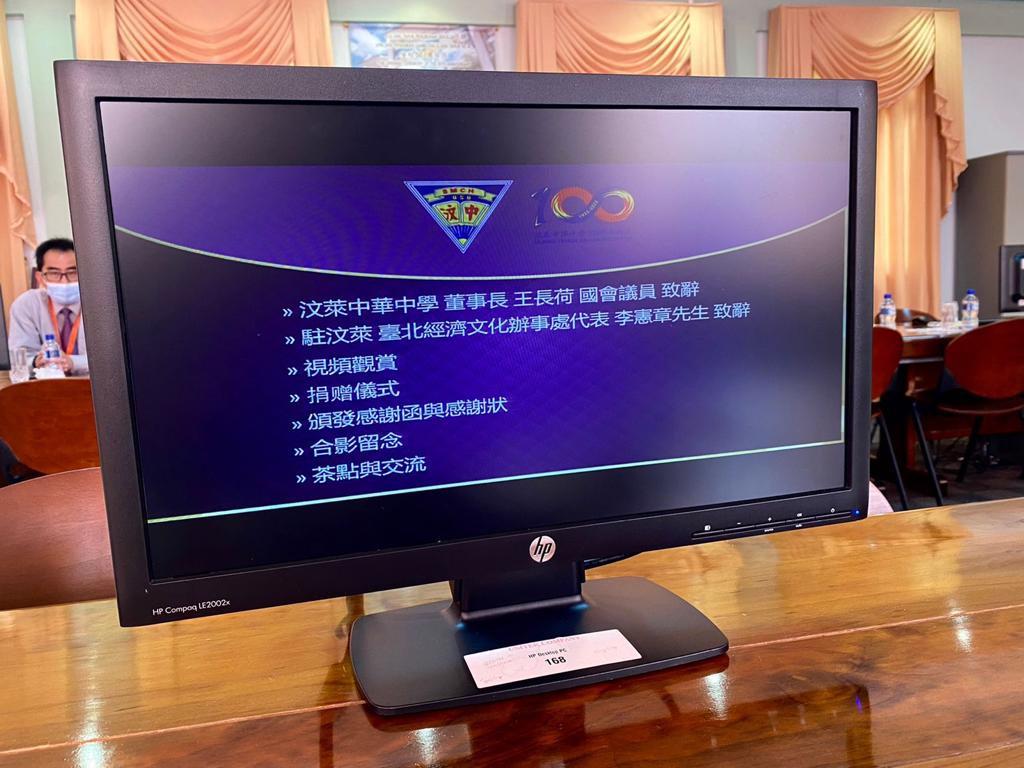 李大使捐贈汶中投影機、櫥櫃、幼兒教材及虎年元宵節提燈,由王董事長代表接受
