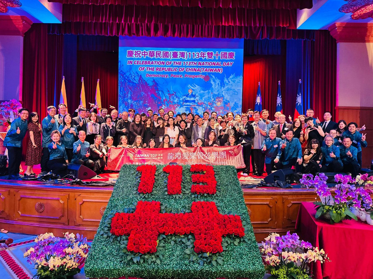 今年國慶晚會再次邀請到龍潭愛樂管弦樂團為出席佳賓演奏臺灣民謠及國際名曲,精湛演出獲得高度讃賞,備增晚會文化氛圍,與會賓客互動熱烈,氣氛溫馨。