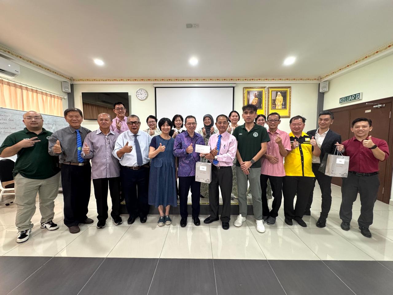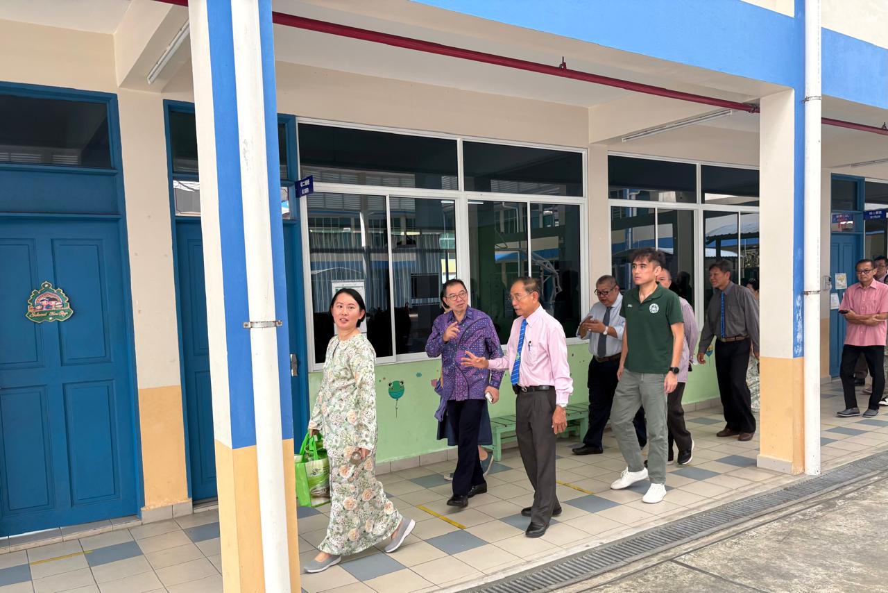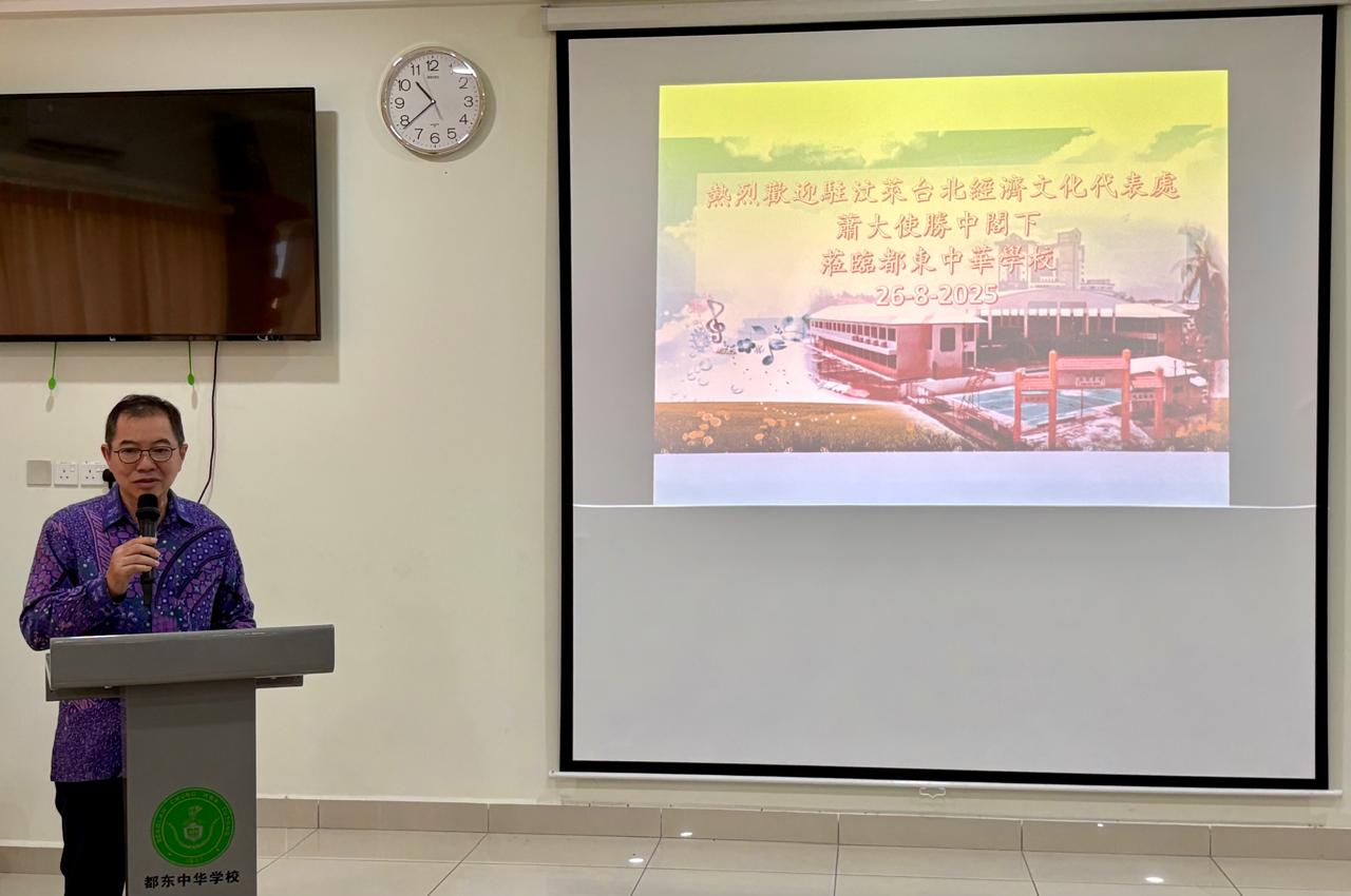 蕭大使致詞特別提及本次校園參訪3項感動之處。首先,都東中華學校創校歷史已逾88年,見證華文教育在汶萊的深厚根基;再者,校內超過七成學生為馬來族群,充分體現族群融合與文化共榮;此外,校內軟硬體設施日益進步,展現董事會與師生群體的努力成果,這些都令人深受感動。