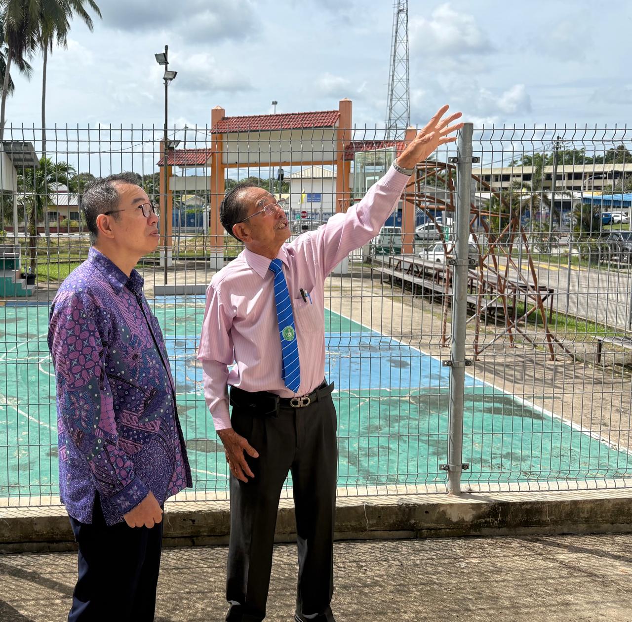 汶萊都東中華學校孫勝利董事長(右)向蕭勝中大使(左)介紹教學設施及校舍導覽-1