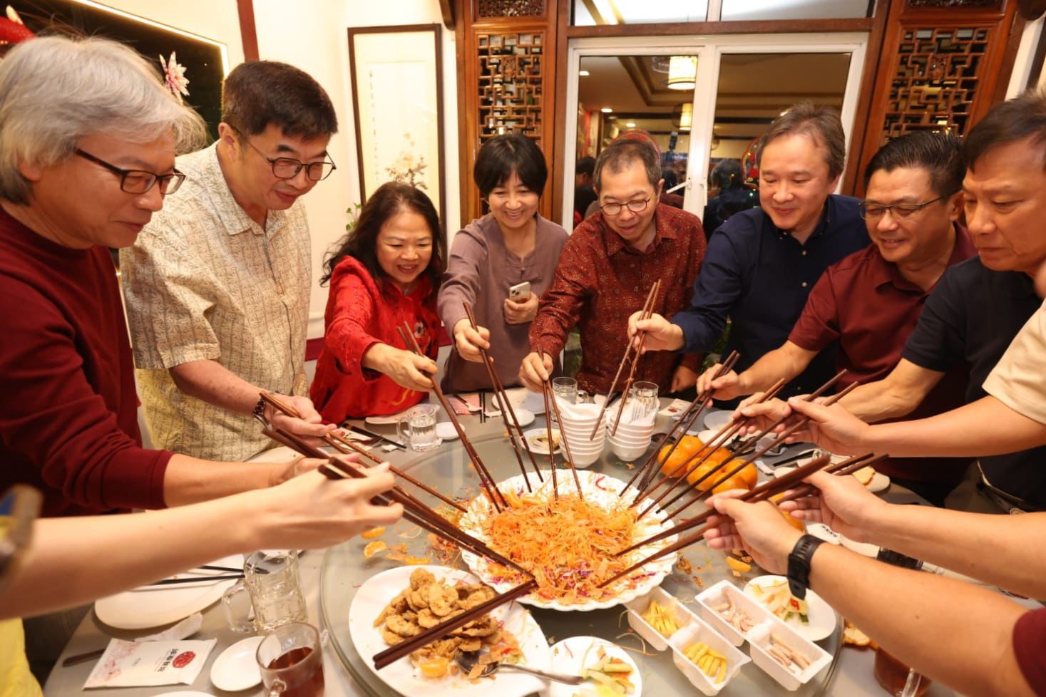 賓客齊聚共「撈生」,象徵新的一年事業興旺、好運連連,吉祥如意