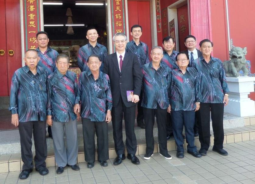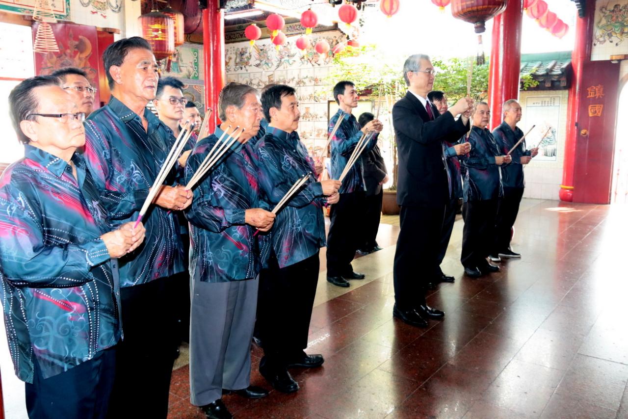 駐汶萊林代表維揚本年4月27日下午獲邀參拜汶萊華人信仰中心「騰雲殿」,獲董事長方天誥率副董事長、理事等熱烈歡迎,並參觀該殿古典閩南寺宇建築、壁磚繪畫,嗣與董事會成員座談。