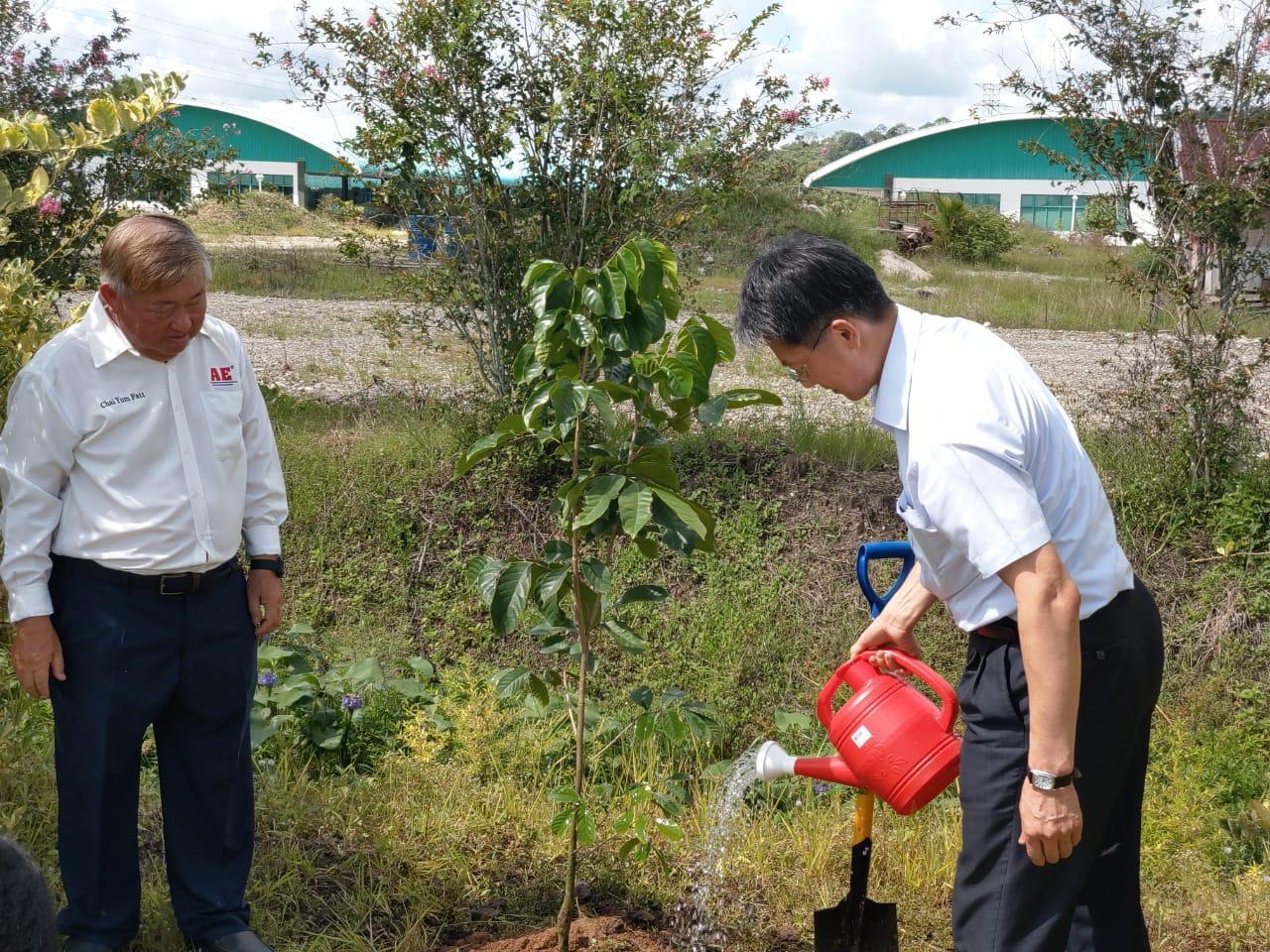 李代表憲章偕商禹秘書2019年12月20日應邀參訪亞洲農業超級市場有限公司(AE Asia Agri-Mart Sdn. Bhd )農場,蔡董事長永發親自接待,並分別植樹紀念。