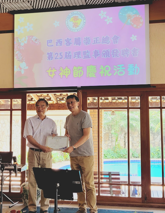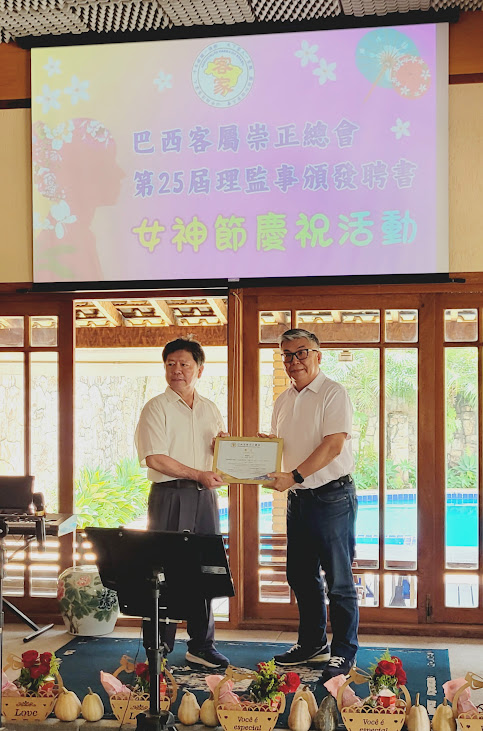 3月8日,巴西客屬崇正總會會員在廖仁煌名譽會長的別墅度過了一個充滿歡欣的週末。當天不僅隆重舉行了第25屆理監事證書頒發儀式,更溫馨慶祝了專屬於「女神們」的國際婦女節!駐聖保羅經濟文化辦事處朱怡靜處長夫婦及台貿中心施懿倫主任也應邀出席。