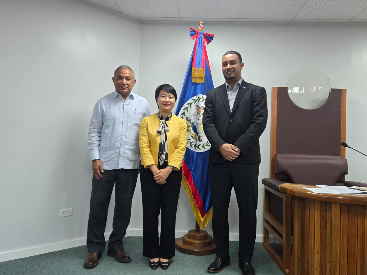 徐大使與貝里斯總理布里仙紐(John Briceño)及代理眾議長Marconi Leal Jr.合影