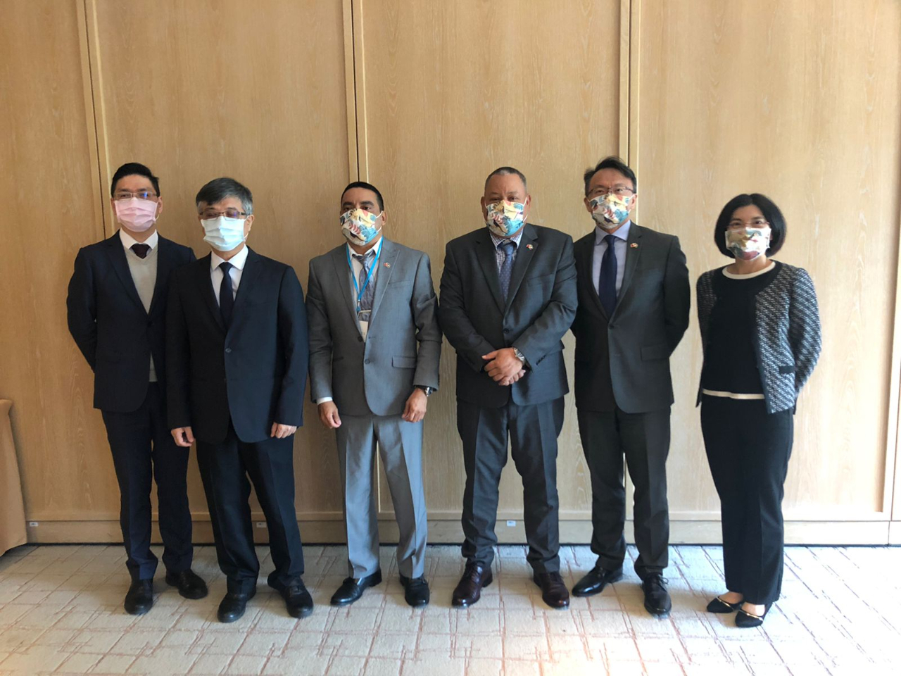 教育部政務次長劉孟奇(左二)、貝里斯教育部長Francis Fonseca(左三)及本館錢大使冠州(右二)。