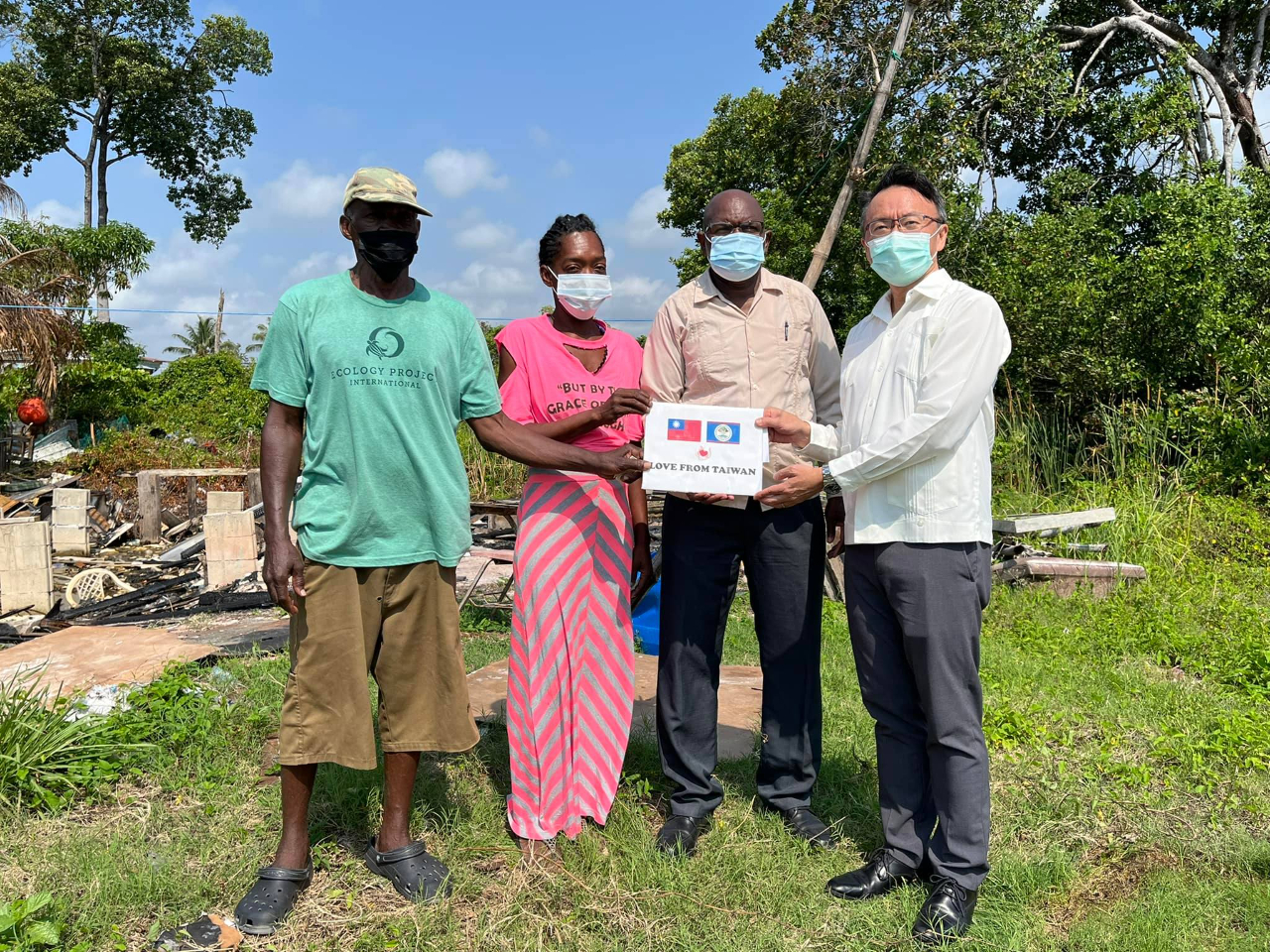為幫助3月在貝里斯Port Loyola區火災受災戶,本館錢大使冠州與該區眾議員兼貝國公共事業、後勤暨電子化政府部國務部長Gilroy Usher共同前往火災發生地點,探視受災居民並捐款協助他們度過難關。(2022/04/05)