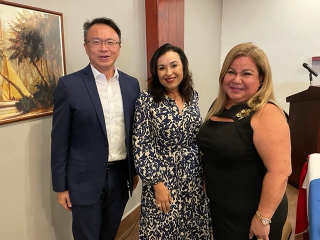 本館錢大使冠州參加駐貝里斯外交使節團的餐敘活動,也很榮幸聆聽貝國總理夫人兼婦幼特使H.E. Rossana Briceno在會中分享貝國家庭及兒童發展前景,並與外交團成員互動交流。(2022/05/10)