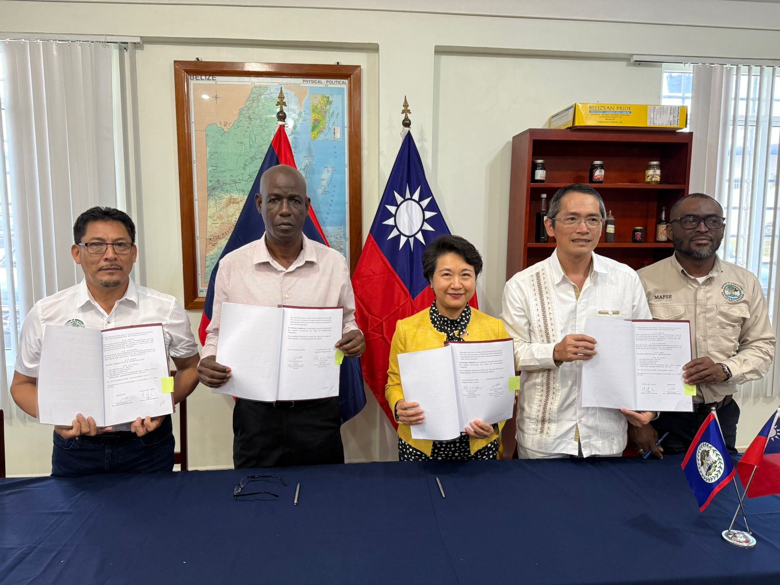 本館徐儷文大使2月9日與貝里斯農業、糧食安全暨新興產業部長Rodwell Ferguson完成簽署「貝里斯農產加工創新育成計畫」執行協議。本計畫主要目標是協助擁有豐富農產資源的貝國建立農產加工的能力,為貝國農產品加值。台灣擁有發展農業科技的豐富經驗,期待本計畫可將台灣經驗分享予貝國友人,進一步協助貝國農民改善生計。