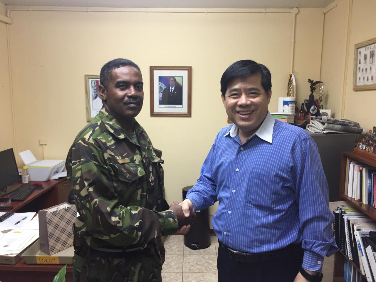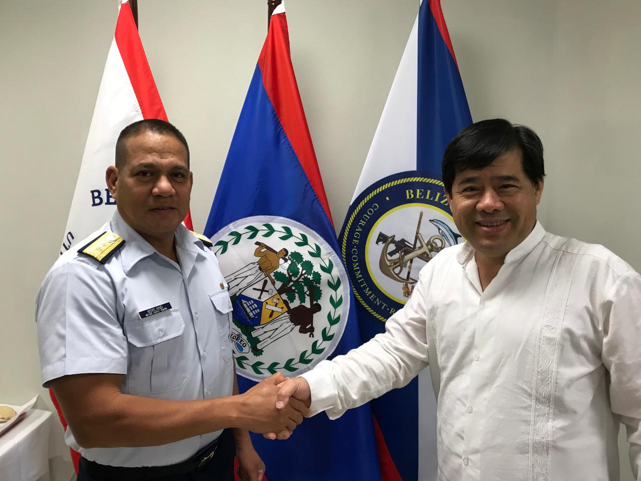 本館陳立國大使分別拜會貝里斯國防軍司令Steven Ortega准將及海岸巡防隊司令John Borland准將,就雙邊安全合作事宜交換意見,並參訪相關營區設施與裝備。