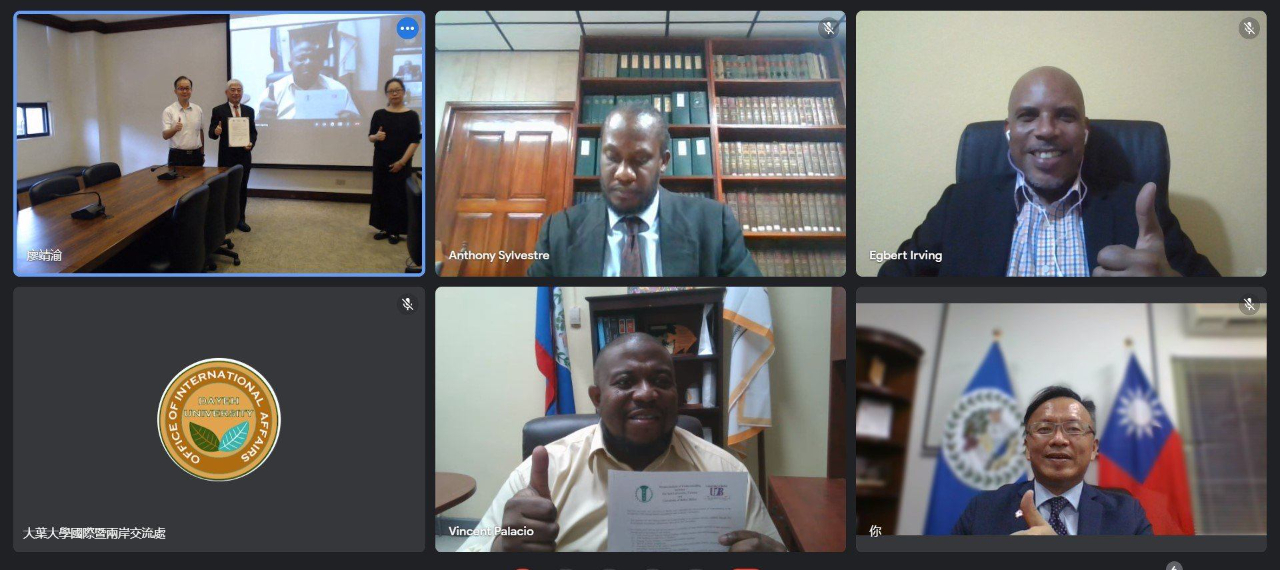 本館錢冠州大使出席我國大葉大學與貝里斯大學簽署教育合作MOU線上簽約儀式。(2022/05/... - 駐貝里斯大使館 Embassy of the Republic of China (Taiwan) in Belize ::: 跳到主要內容區塊