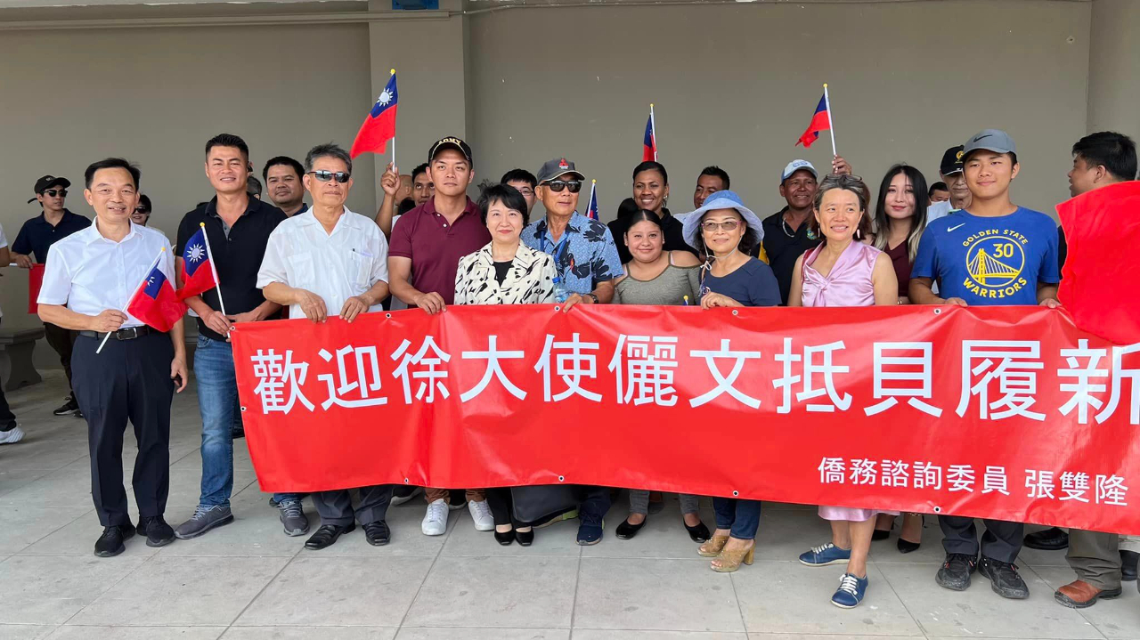 本館徐儷文大使及夫婿董國猷大使於本(112)年2月24日搭機抵達貝里斯履新,旅貝僑領及僑胞們熱情於機場迎接。徐大使感謝僑胞們特別撥冗到機場歡迎,並期待在貝里斯這個美麗的國家展開新職。
