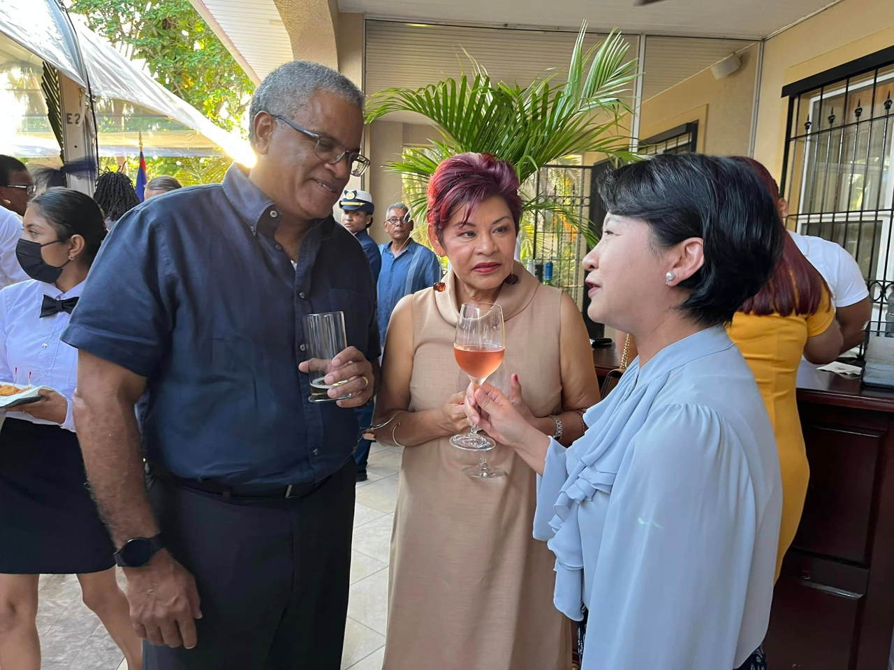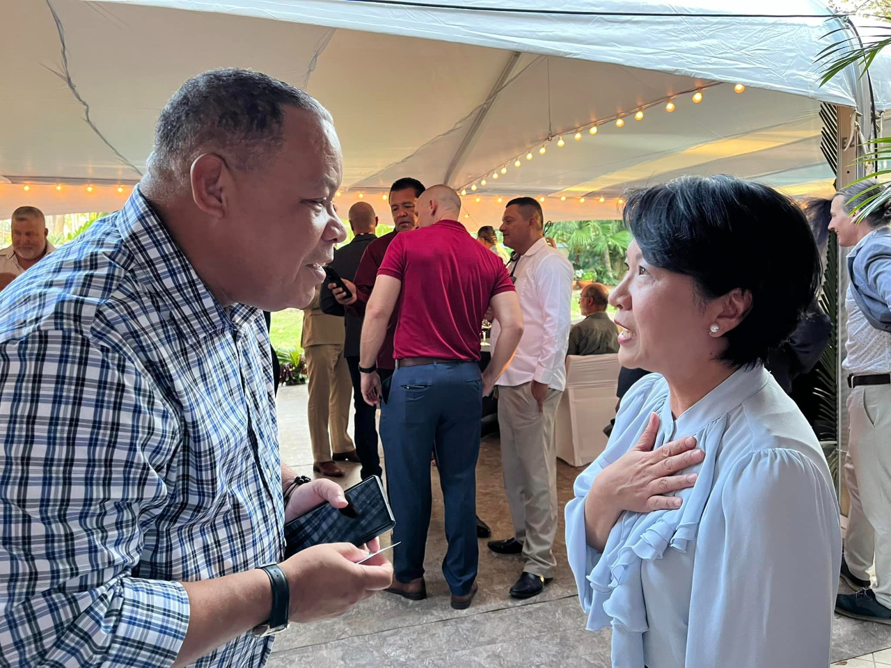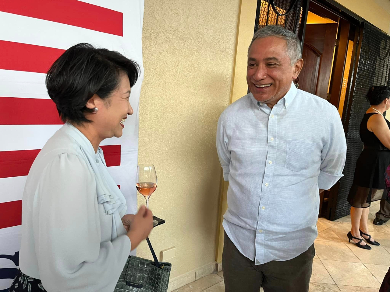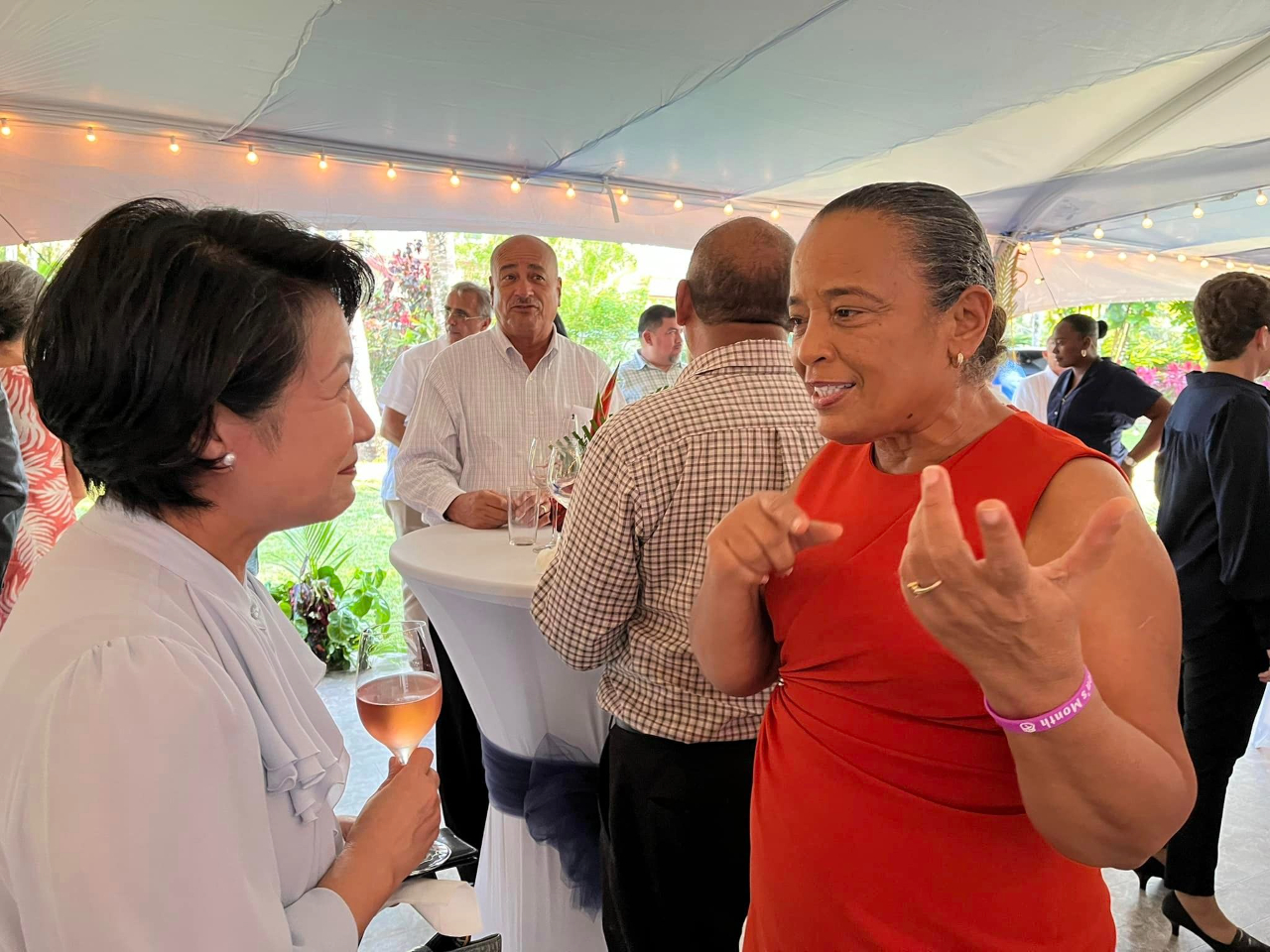 本館徐儷文大使很高興能參加美國駐貝里斯大使關穎珊(Michelle Kwan)的到任歡迎酒會,徐大使向關大使表達問候,同時也受到關大使的誠摯歡迎,並在會中和許多貝里斯的好朋友們會晤寒暄。