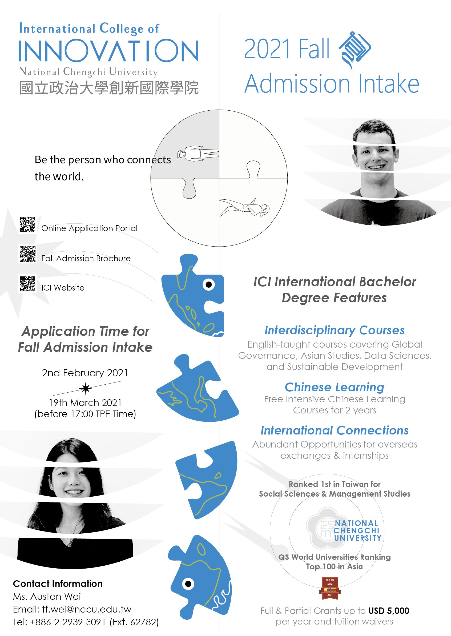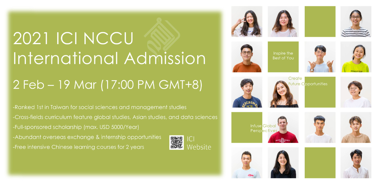 國立政治大學創新國際學院110學年度第二階段國際招生(截止日期至臺灣時間3月19日下午5點)