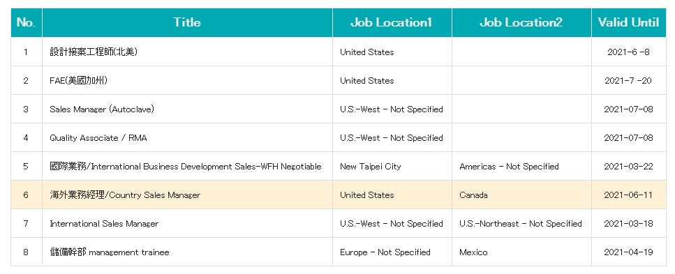 繼本處上(2020)年辦理「臺灣全球攬才線上說明會-青年學子的職涯機會」活動,深受加東地區青年朋友們熱烈參與回響,共150餘人連線參加說明會,且活動結束後本處亦陸續收到對於經濟部Contact TAIWAN攬才平台之相關職缺詢問電郵,感謝各位同學熱情參與及協助推廣。在此特別通知Contact TAIWAN攬才平台最新發布的美洲地區職缺資訊如下,敬請參考並歡迎轉知其他有興趣和有求職需要的青年朋友們。此外,有意申請Contact TAIWAN攬才平台上職缺的同學和朋友們,請注意需要先註冊登錄成為會員。