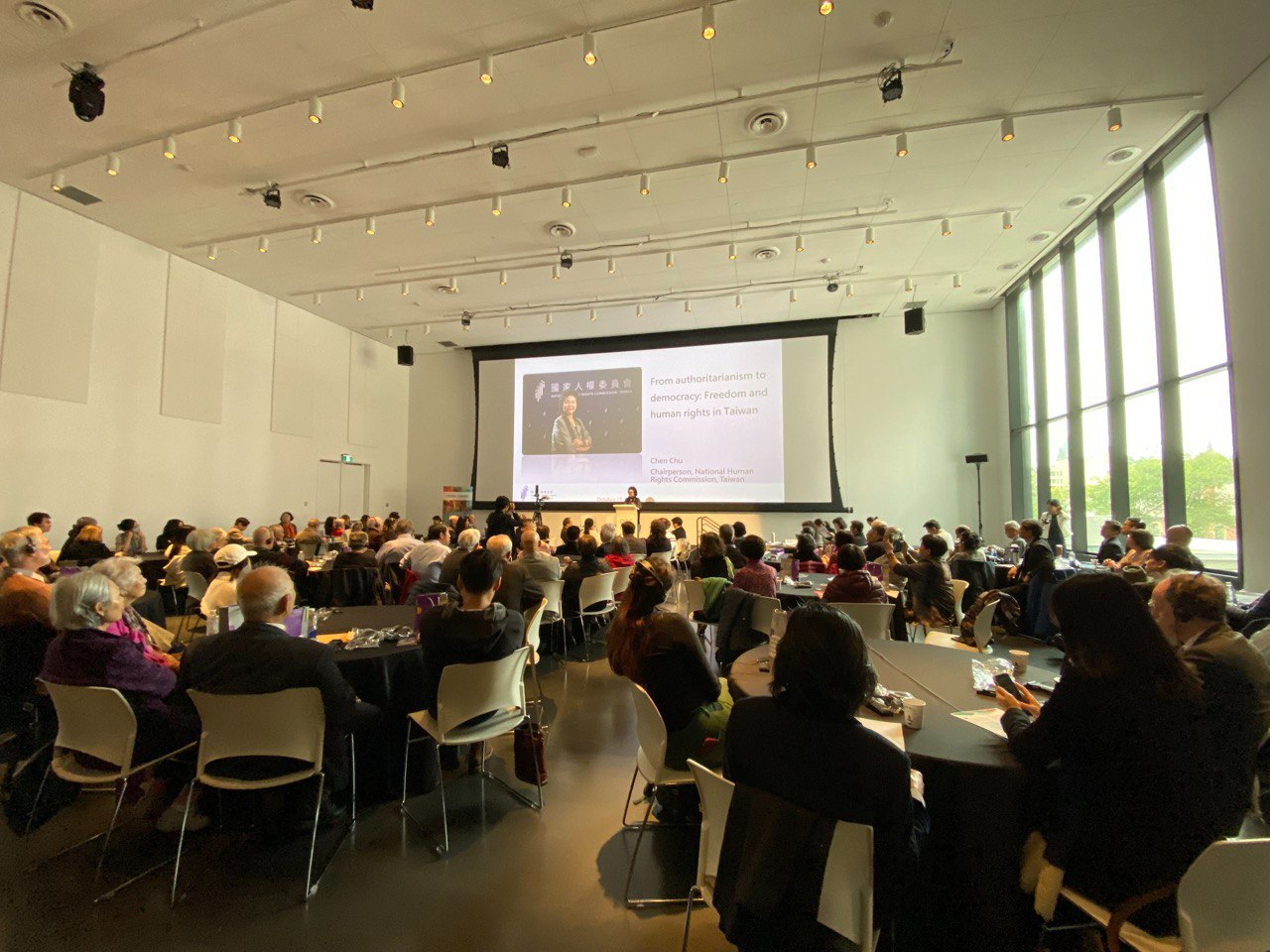 本月17日,監察院長兼國家人權委員會主任委員的陳菊受渥太華大學人權研究暨教育中心邀請,在加拿大首都渥太華藝術館進行「從威權到民主:自由和人權在台灣」主題演講。