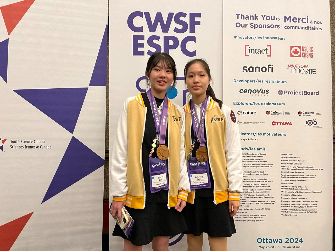 一年一度的加拿大科學展覽會 (2024 Canada-Wide Science Fair)在渥太華卡爾頓大學(Carleton University)舉行,是加拿大規模最大的青少年科學展覽會。宋佩容和李佳怡這項作品在今年初的台灣國際科學展覽會上榮獲大會二等獎,被選派代表台灣赴加拿大參賽。
