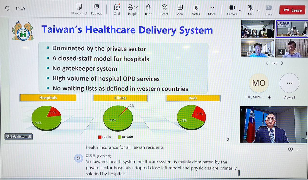 加拿大聯邦參議院「健保小組」(Health Care Group)於本(6)月11日晚間與我國衛生福利部首度舉行視訊會議,就我國健保及公衛制度進行簡報,盼學習借鏡台灣經驗,藉以強化加國醫療體系,並推動台加兩國未來在公衛領域之制度化合作。