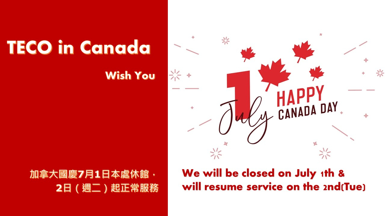 7月1日為加拿大國慶日,本處祝加拿大生日快樂 ! 當日本處休館一天~