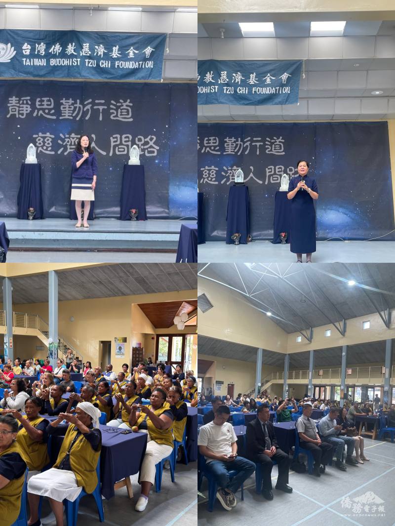 負責人賴玉容首先介紹開普敦慈濟團隊,她表示,開普敦聯絡處目前已培育許多在地志工,深根社區服務,分享臺灣的愛與關懷。陳瑩莉也接著表示,慈濟是臺灣最大的宗教慈善團體,自1991年救援孟加拉水災後至2024年的33年間,慈濟已經在164個國家及地區進行國際救援賑災活動;慈濟從臺灣本土宗教慈善團體做起,現已成爲足跡橫跨全球五大洲164個國家及地區的全球性救援組織,對國際的貢獻獲得聯合國肯定,並於2003年成為臺灣第一個加入國際非政府組織的慈善團體,此外直到去年已連續14年參加聯合國婦女大會,成就令人感佩。