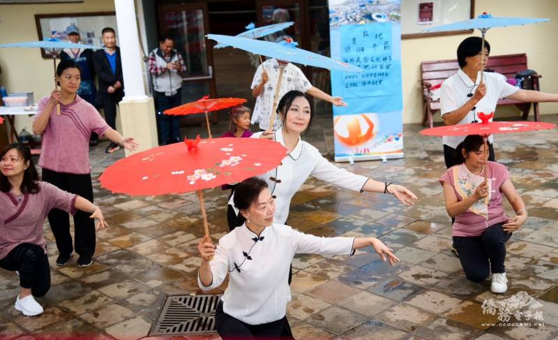 接著,劉玫蒨教授呈現客家文化與日常生活形態之舞曲,藉此讓大家實地瞭解客家文化動態之美。她另帶領舞蹈班學員表演客家紙傘舞,曼妙舞姿獲得在場人士熱烈掌聲;大家除欣賞了臺灣客家舞蹈之生動及優美,亦深刻體會到臺灣民俗文化之多元與豐富。
