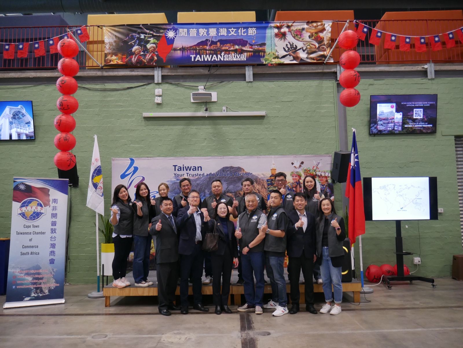 開普敦臺灣商會及所屬青商會於9月7日在南非開普敦著名景點 V&A Waterfront Makers Landing 盛大舉辦「2025年開普敦臺灣文化節」(Cape Town Taiwan Festival)。這項活動已睽違近十年未舉辦,僑界與當地主流社會翹首以待,當日現場人潮洶湧、氣氛熱烈非凡。活動匯聚各式臺灣美食、精彩民俗技藝、茶藝展示及傳統文化表演,不僅吸引大批僑胞熱情參與,也吸引南非政要、民眾及國際遊客共襄盛舉,總計約有一千餘人到場。駐開普敦辦事處陳瑩莉處長偕全體同仁應邀出席,與僑胞及當地民眾同樂,大家一起「看見臺灣」。