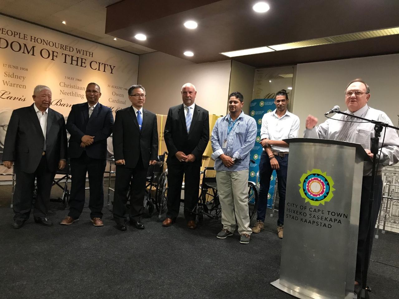Director General Dean Wang hand-over wheelchairs and medical equipment to the City of Cape Town
