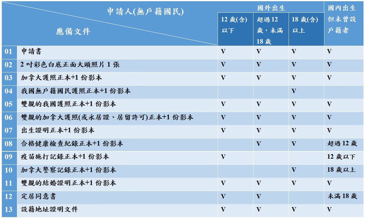 1.父母一方為居住臺灣地區設有戶籍國民,一方為中國人民,在中國出生未滿一歲之子女。