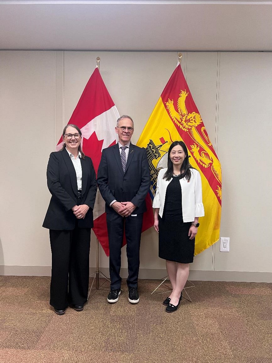 陳處長於5月14及15日赴紐布朗斯維克省Fredericton市,分別拜會省督Louise Imbeault、省議會議長Francine Landry、政府間事務廳廳長Jean-Claude D’Amours、農林漁業廳廳長Pat Finnigan、投資廳廳長Luke Randall、Fredericton市長Kate Rogers,以及紐布朗斯維克大學校長Paul Mazerolle,深入討論經貿、教育、文化、科技及原民等台紐雙邊關切議題。