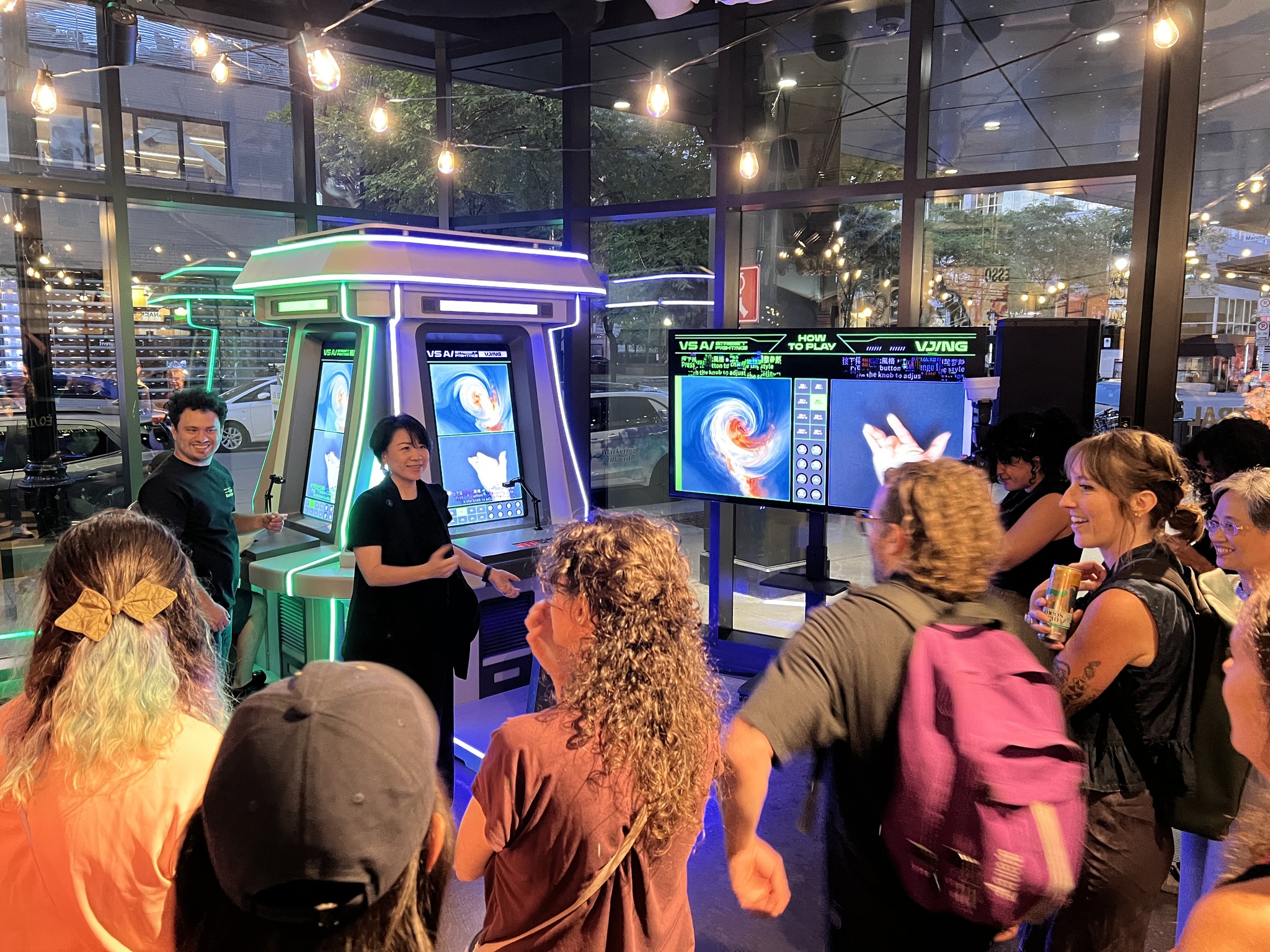 “VS AI Street fighting”utilise des technologies d’IA générative permettant à deux spectateurs de s’affronter sur une borne d’arcade en créant des images en temps réel, alliant interactivité et expression artistique.