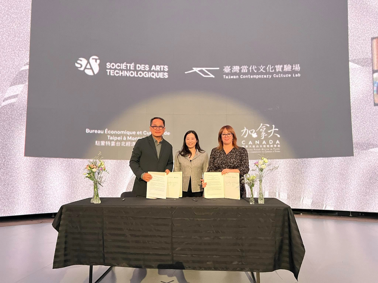 La DG Rita Chen a participé, ce 20 mars, à la cérémonie de signature d’un mémorandum de coopération entre C-LAB et la Société des arts technologiques [SAT], présenté par le président du Taiwan Living Arts Foundation, M. Peng Jun-Heng, et la directrice générale du SAT, Mme Jenny Thibault.
