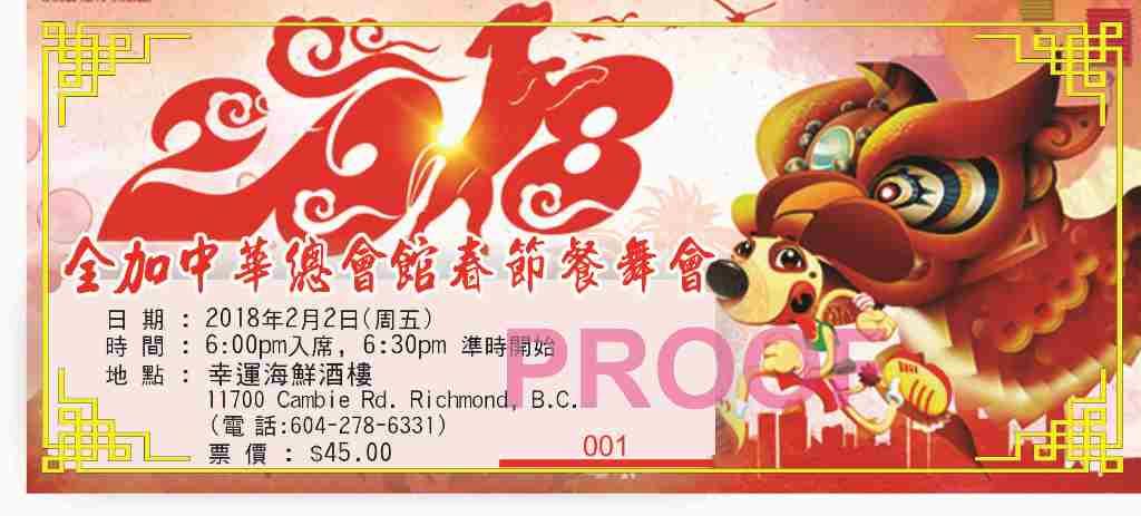 時間:2018年2月2日 (星期五) 下午6時 地點:列治文市幸運海鮮酒樓 (Continental Seafood Restaurant, Cambie Plaza, #150-11700 Cambie Road, Richmond) 餐費:$45/每人 購票專線:May 778-558-7507,Allen 604-802-3299,Julie 604-240-6632