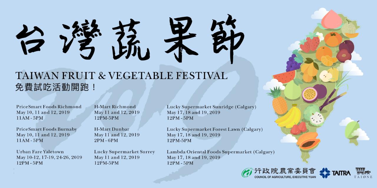 We cordially invite you to attend the "Taiwan Fruits & Vegetables Festival 2019" opening ceremony on May 11th, 1:00 pm at the PriceSmart Foods Richmond. We welcome you to bring your family and friends for free fruit samples. Please refer to the event poster for the participating supermarkets and the time frame. Looking forward to seeing you there!