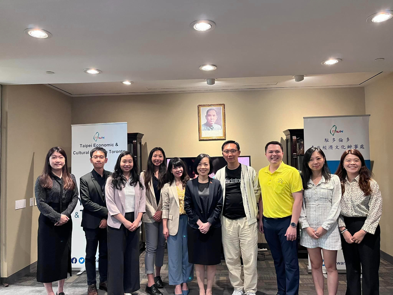 6月13日由林口新創園國際行銷與策略組國際長陳佳惠帶領團隊與五家台灣新創廠商,包括鏈加科技、泰科動力、黑森林科技、亞博福爾摩沙及醫流體特別來駐多倫多台北經濟文化辦事處拜會。