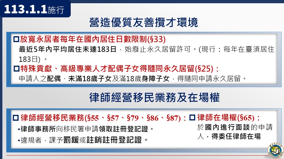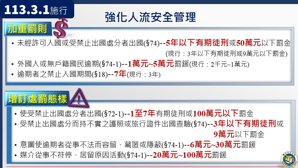 入出國及移民法修正重點相關簡報: