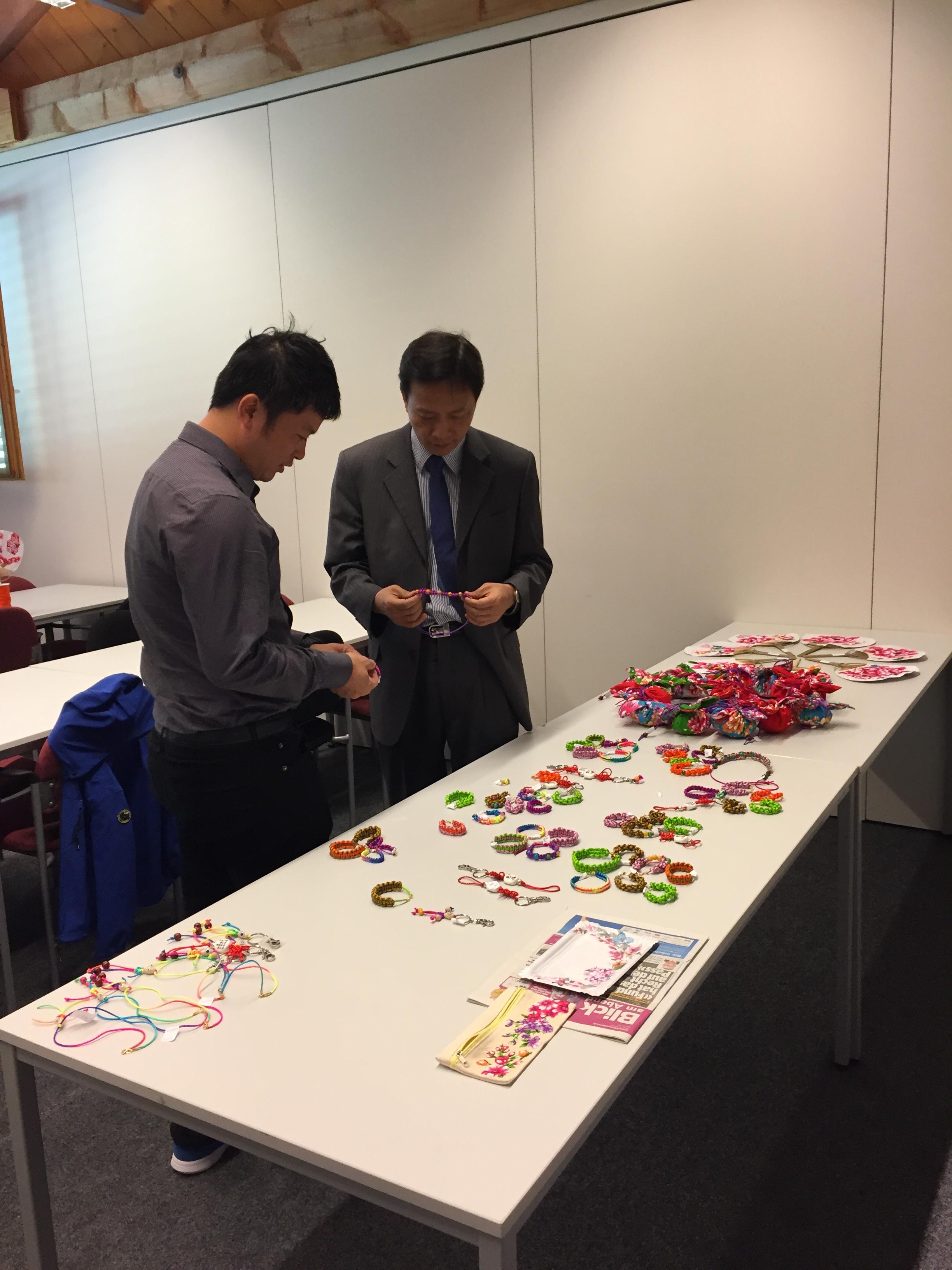 僑務委員會此次特別派羅先福及胡秉盛兩位海外文化教師前來支援,羅老師教授客家花布小提袋、燈籠藝術、造型捏麵創作及水墨扇浮水印及國劇臉譜等民俗藝術,胡老師教授刀術及舞獅中華武術。