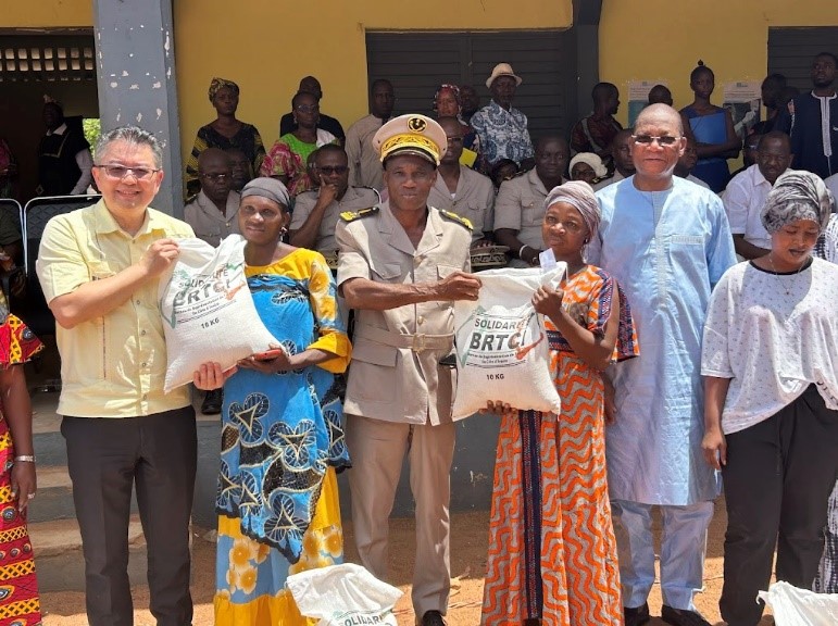 象國營建部長兼象北Bagoué大區議會議長柯內(Bruno Nabagné KONE)為感謝我國捐贈該大區8,000包優質台灣米,特於4月19日在大區首府Boundiali辦理首場2,800包援米受贈儀式,並邀請辛代表繼志出席。大區政要、地方酋長、宗教團體領袖、民間社團及民眾共約3,000名出席。