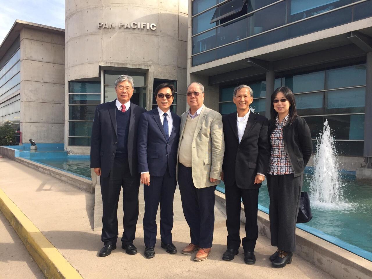 本處溫曜禎代表偕李錦盛參事及經濟組組長林明雅本(8)月10日上午參訪智利台商Pan Pacific公司,由陳董事長吉明引領參觀水果塑膠盒生產情形,陳董事長並分享其創業歷程及就智利經商環境交換意見。溫代表對陳董事長認真踏實經營有成深表敬佩,陳董事長亦感謝溫代表對智利台商的支持。