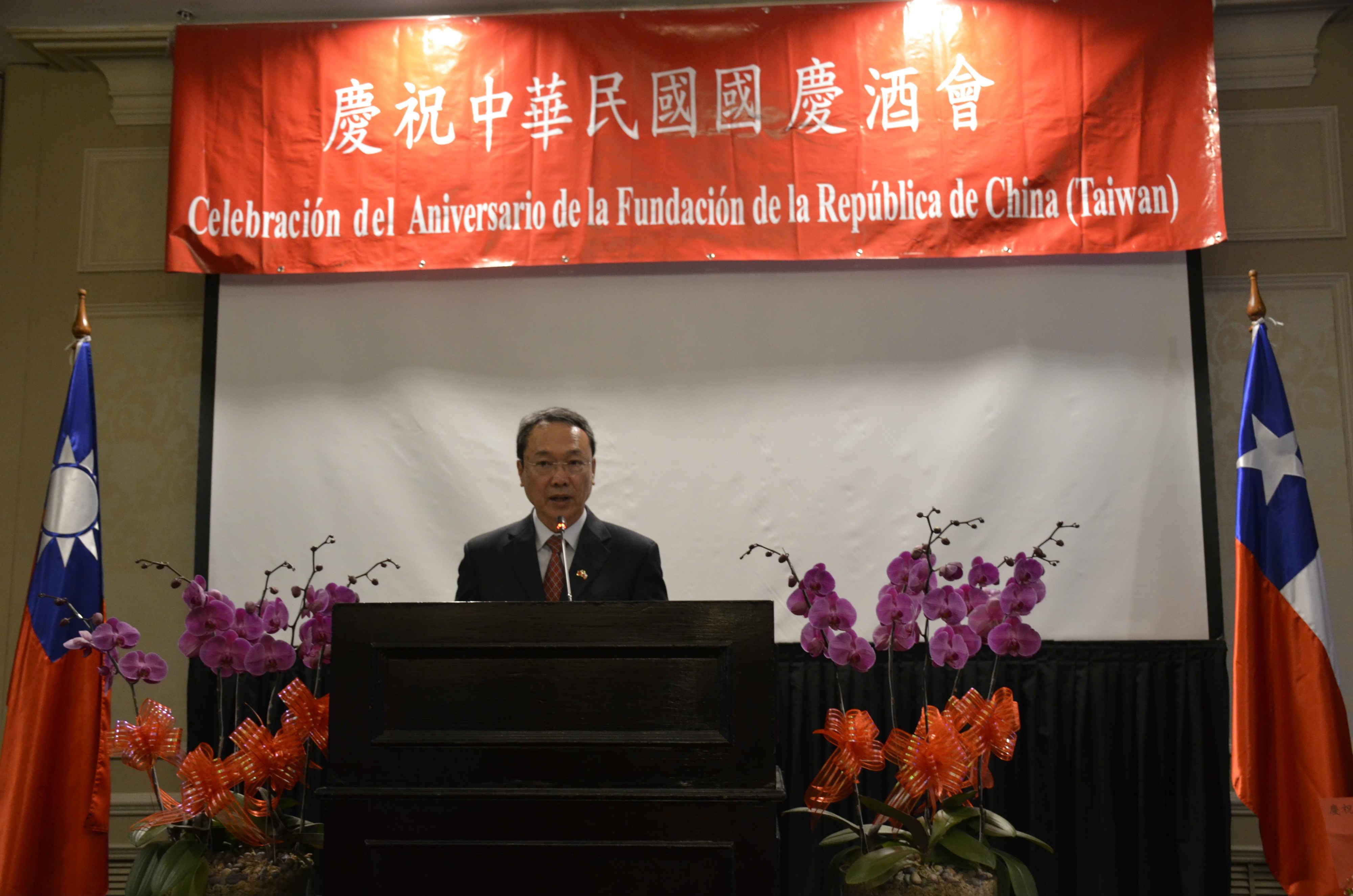 代表處陳大使新東致詞表示,本年元月台灣人民經由民主機制選出我國史上首位女性元首,並引述蔡總統英文在520就職演說中強調,新政府將主導進行經濟結構轉型、強化社會安全網、實現社會公平正義、維護區域和平穩定發展及妥善處理兩岸關係、善盡地球公民的責任,在外交與全球性之議題上作出貢獻,讓台灣走向世界,也讓世界走進台灣。陳大使繼稱,上年台灣出口全球排名第17、競爭力全球排名第14,另依照國際貨幣基金會資料,我國購買力平價將近4萬8千美元,高居世界第16名,未來我將續運用高科技發展優勢,深化與智利在經貿、觀光及文化之合作與交流。本年代表處在聖地牙哥市立劇院舉辦我國傳統布袋戲偶演出,以及105年外交部國際青年大使訪問團在智公演活動,均成功以文化外交讓智利民眾認識台灣;此外,國內多次籌組貿訪團來智拓展商機,智利外交部對外推廣局長也於本年7月訪台並與我貿協簽署合作備忘錄,台智亦自本年元月1日起互免觀光簽證,我國已與澳洲等15個國家簽署青年度假打工協議,並已與紐西蘭簽署經貿合作協議,期盼台智兩國亦能簽署青年度假打工及經濟合作協議,嘉惠台智兩國人民。