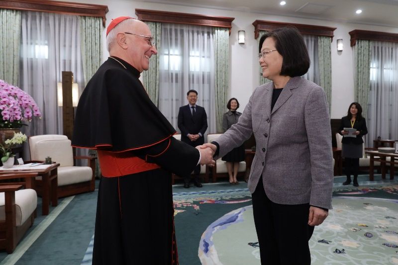 Durante su estadía en Taiwan, Filoni fue recibido por la presidenta Tsai Ing-wen, a quien le hizo llegar un mensaje de cariño, respeto y aprecio de parte del papa Francisco. También se reunió con el vicepresidente Chen Chien-jen.