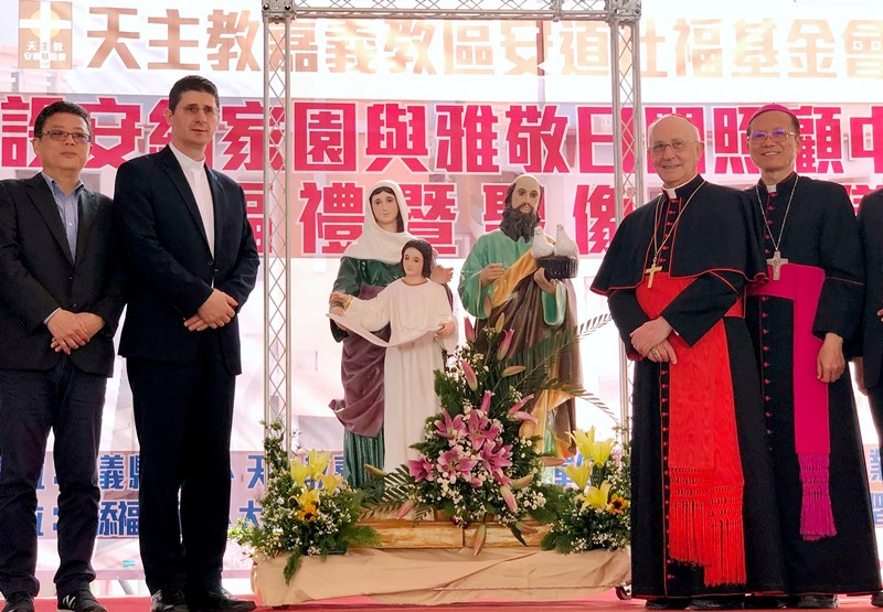 Un momento de la inauguración de una estatua de la Sagrada Familia en un asilo para ancianos en el distrito de Chiayi. (Foto de CNA)